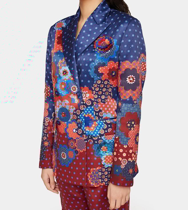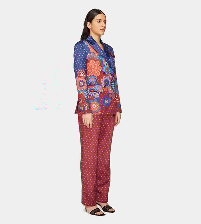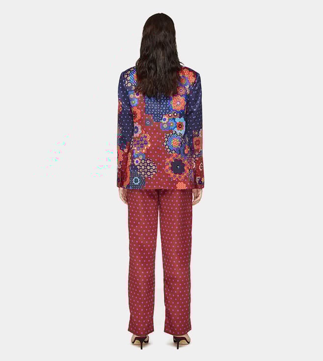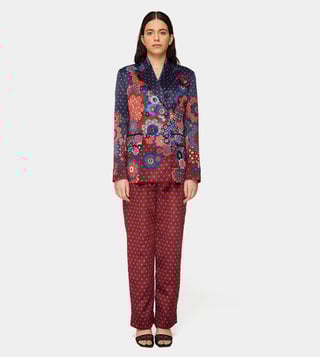 This polyester blazer and pant set from Satya Paul comprises a double-breasted blazer in double satin with straight fit pant which will lend you a gorgeous look. A brooch will add a little extra oomph. Don this attire and stay updated with the latest trends. Disclaimer: All other items in the image are only for display purposes and will not be a part of the delivery content. Product colour may slightly vary due to photographic lighting sources. Country Of Origin - India.