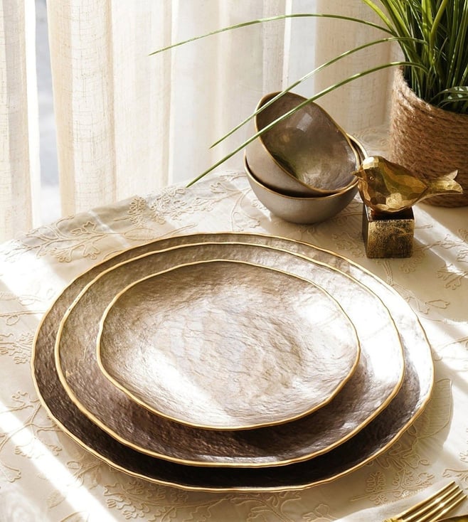 Gold Stainless Steel Zig Zag Textured Dessert Knives - Set of 6
