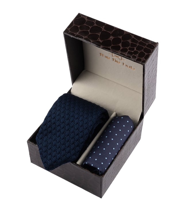Blue Luxury Knitted Necktie with Pocket Square Combo Set