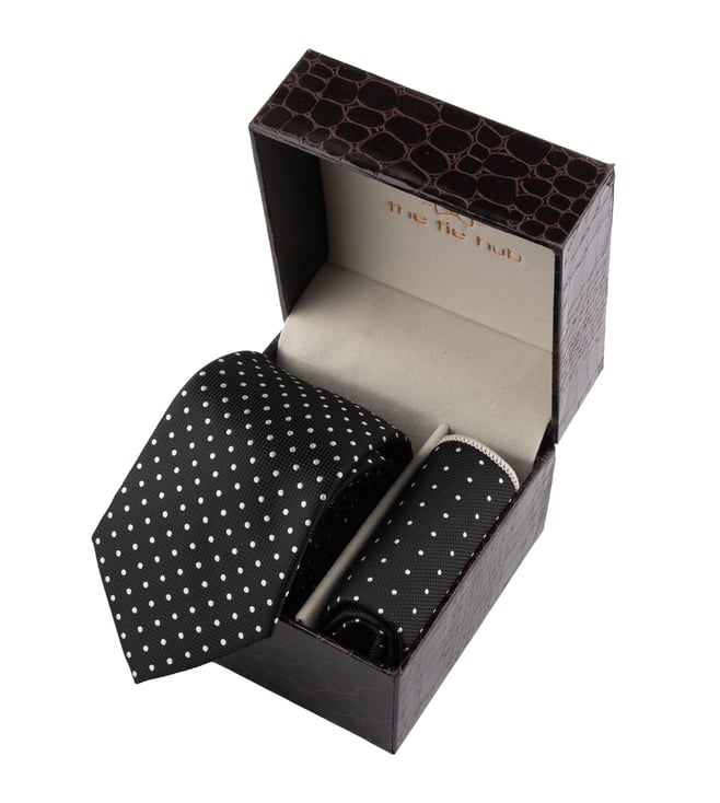 Black Necktie with Pocket Square and Cufflimk Gift Set