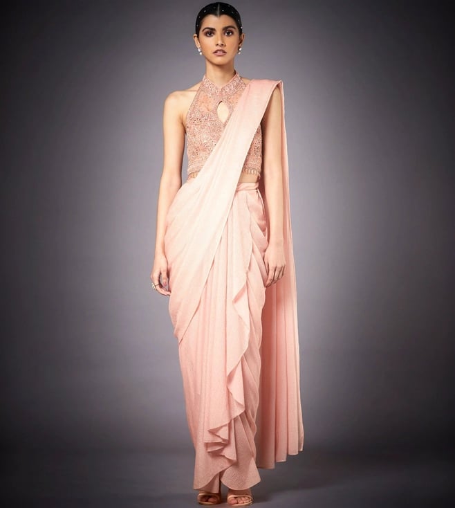 Pink Embroidered Ensemble Draped Saree