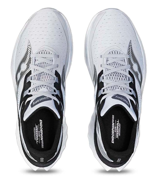 These running shoes from Saucony are built with smooth SPEEDROLL technology. PWRRUN PB technology features cushioning that snaps back. The improved design has a zonally engineered and integrated tongue for a connected, secure fit.