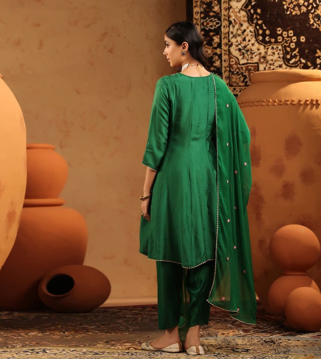 SCAKHI Green Pure Silk Regular Fit Suit Set