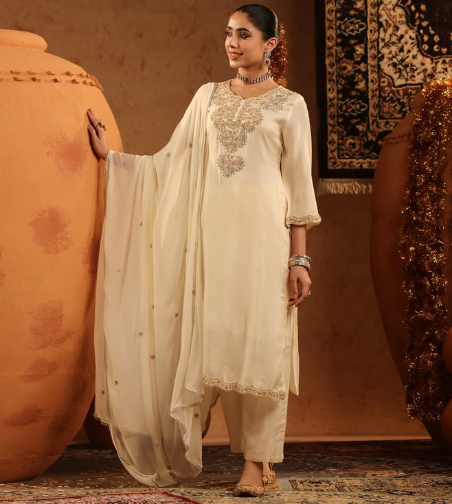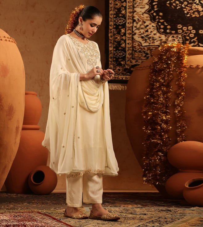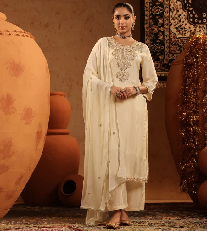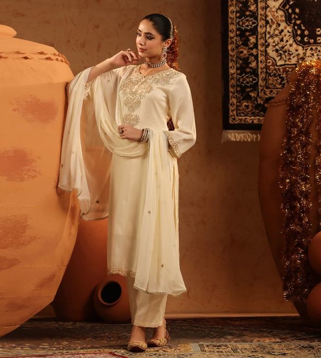 SCAKHI Ivory Pure Silk Regular Fit Suit Set
