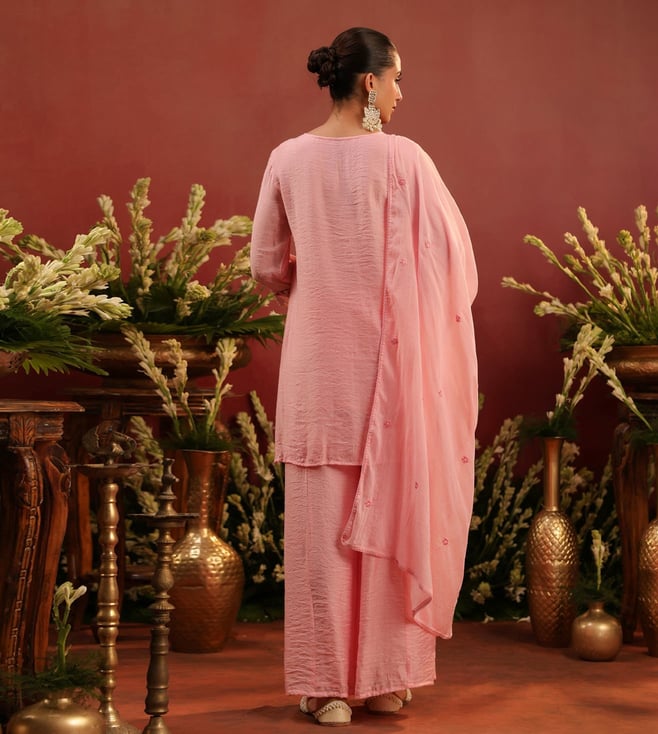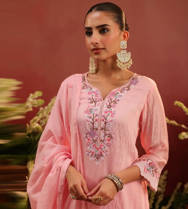 SCAKHI Pink Chanderi Silk Regular Fit Suit Set