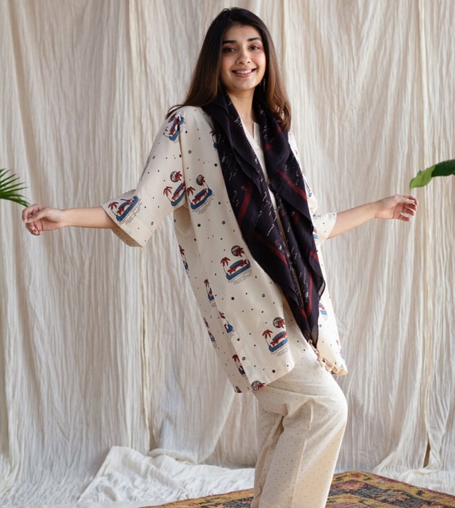 Black Lake Ajrakh Hanblock Printed Mul Scarf
