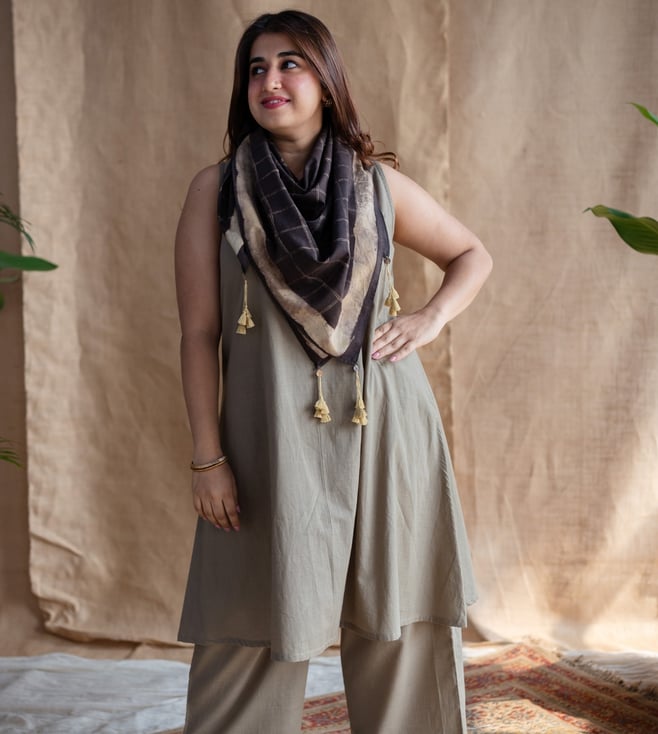 Charcoal Dabu MulMul Cotton Checks Scarf