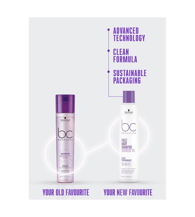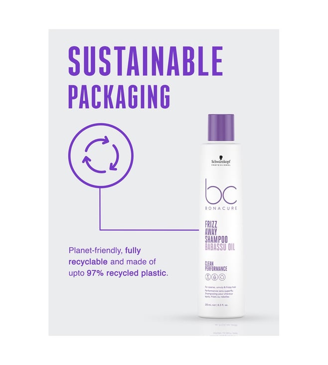 New BC Bonacure range is powered with vegan keratin complex and cell equalizer technology. Vegan keratin complex helps improve cortex strength and cell equalizer helps repair the outer cuticle of the hair. BC Bonacure Frizz Away shampoo is a taming shampoo for unruly, coarse hair. Hair is unruly, thick and coarse, and can be wavy or curly. It is frizzy and needs smoothing and control. Gently cleanses unruly and frizzy hair The formula smoothens the surface and instantly improves manageability.