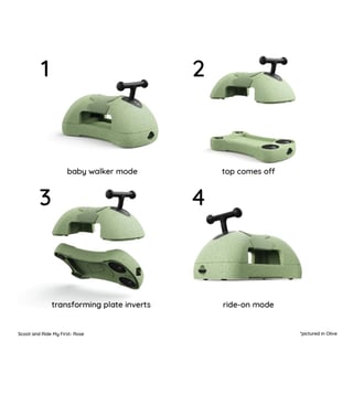 My First is the ideal ride-on vehicle for toddlers from 6 to 36 months. This innovative 3-in-1 slide supports your baby's motor development and provides unlimited playtime fun in your home.Thanks to the removable and reversible lower plate, the baby slide adapts perfectly to your child's needs. The gliding pads - attached to the underside - provide stability for the first attempts at standing and walking, while the quiet wheels on the other side of the plate offer unlimited indoor fun. Made from EPP.
