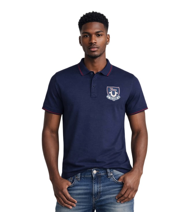 Men Cotton Navy Blue Solid Polo T-Shirt