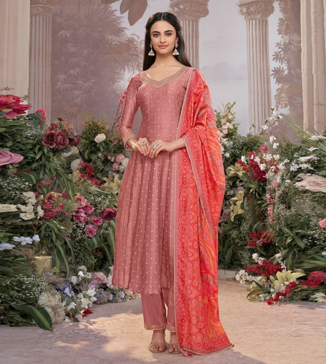 Dusty Pink Embroidered Regular Fit Anarkali Suit Set