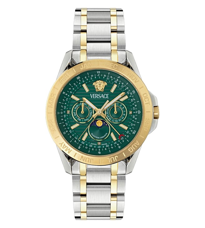 Green Round Dial Analog Multifunction Chrono Moonphase Men Watch - VE0K00325