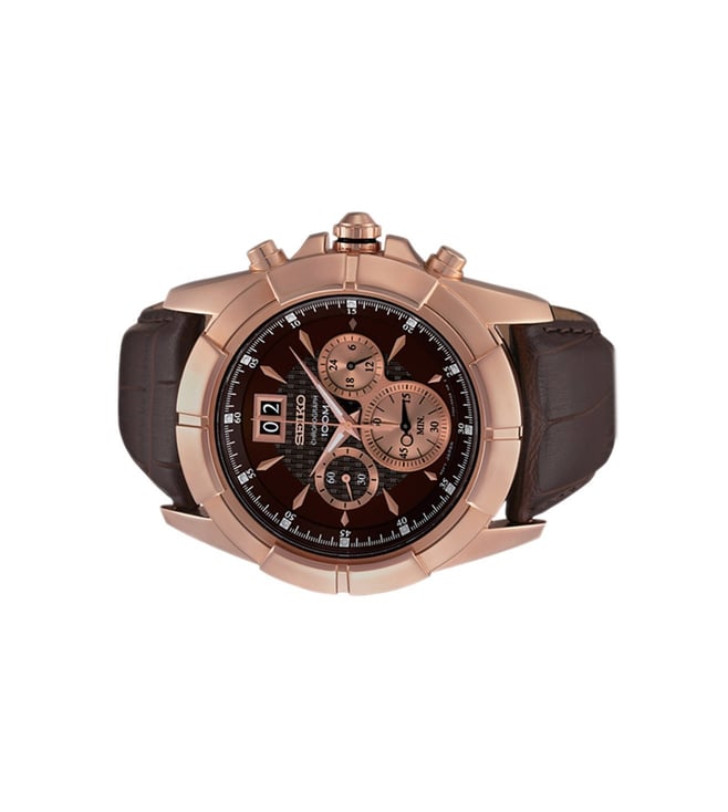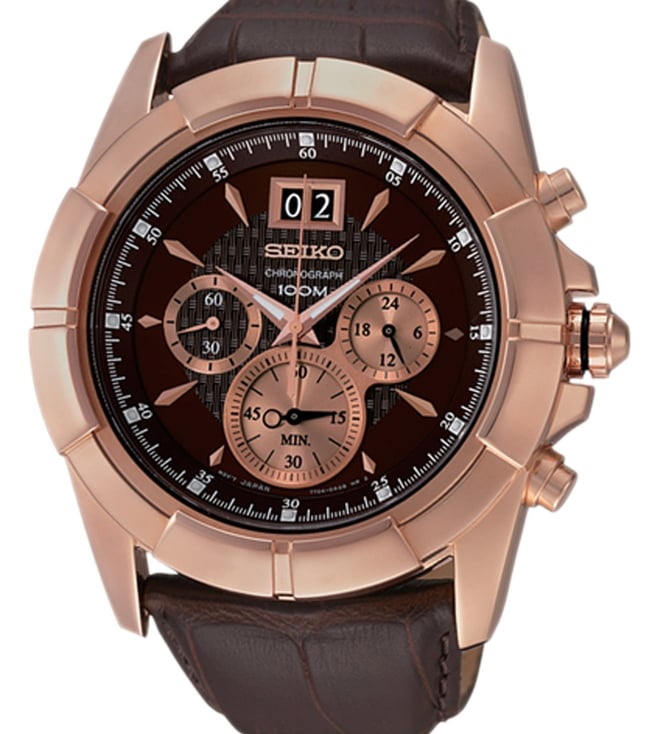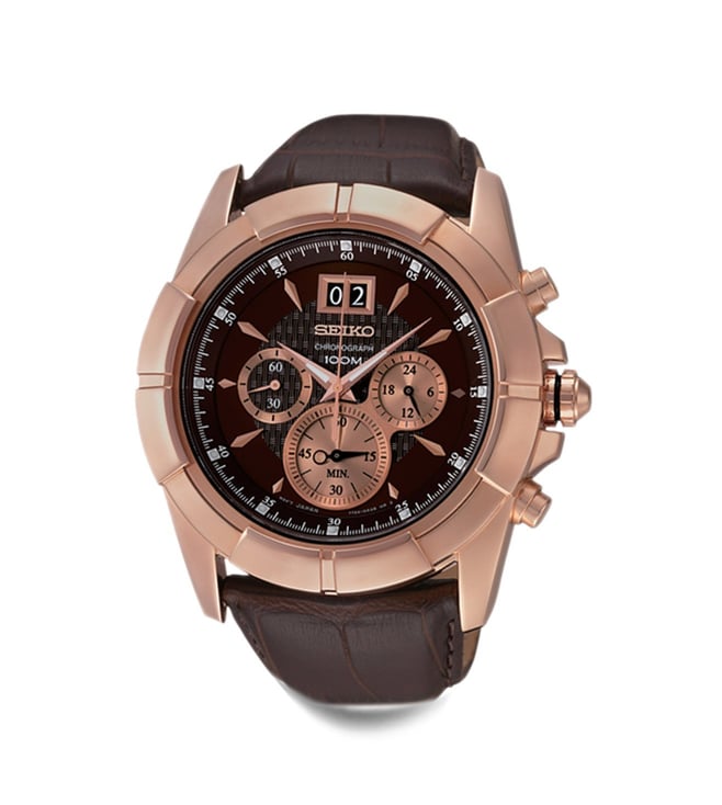 Accessorize your outfits with this smart Seiko analog watch from the Lord collection. This watch will stay securely on your wrist, thanks to its brown genuine leather strap that sports a robust clasp. It features a 43.3 mm black round stainless steel dial with Quartz movement for precision. Moreover, this Seiko watch is water-resistant by up to 100 m.