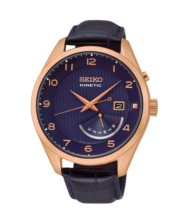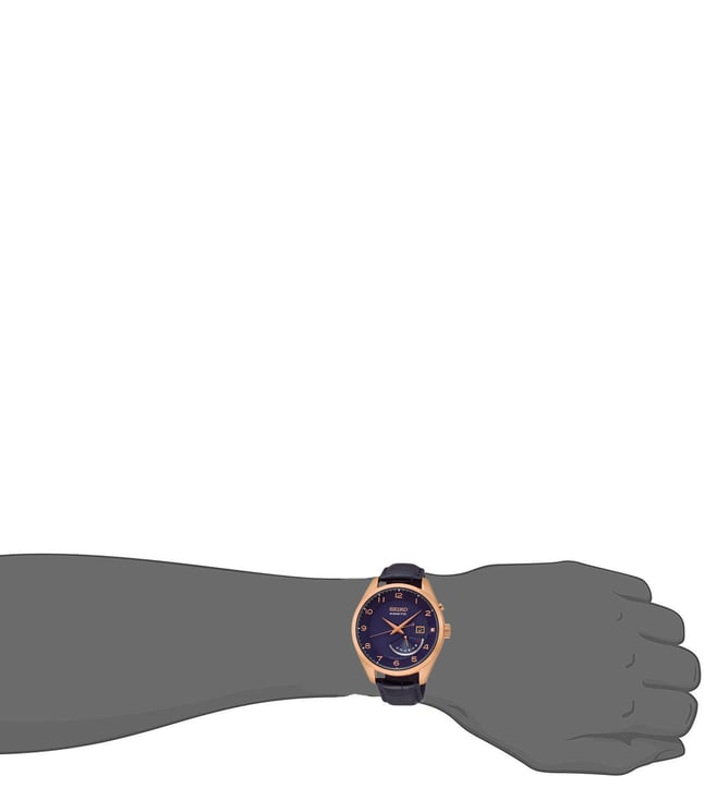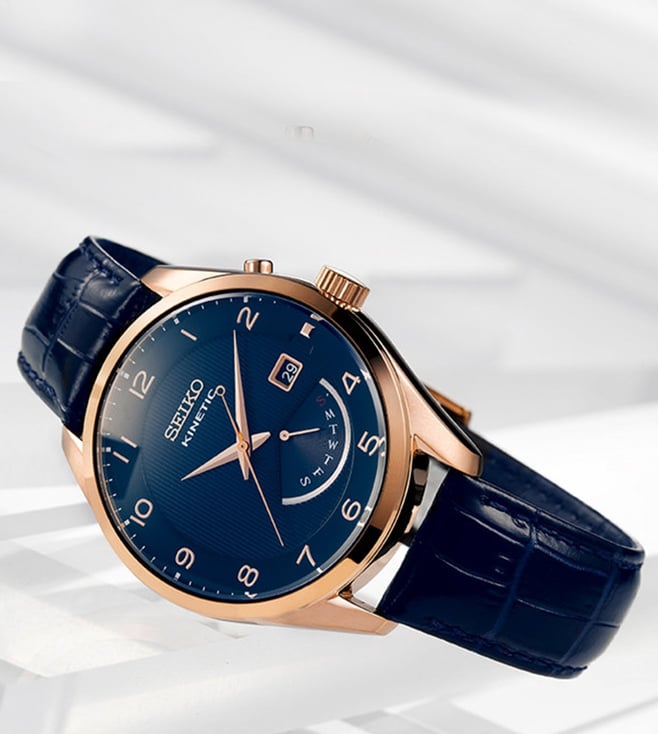 The Seiko Classic collection watch comes with quartz movement. Hardlex blue dial with a 42 mm stainless steel case is attached to a genuine leather strap. Along with day and date features and water resistance of up to 100 m, the watch comes with two years warranty period.
