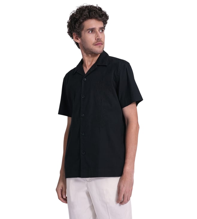 Elevate your wardrobe with this timeless black shirt, crafted for the modern man who values both style and comfort. Its regular fit ensures a flattering silhouette, while the solid pattern exudes understated elegance. The short sleeves offer a relaxed vibe, perfect for any occasion. Made from premium cotton fabric, it promises breathability and softness against the skin. The classic shirt collar adds a touch of sophistication, and the button closure provides a sleek finish, making it a versatile staple.