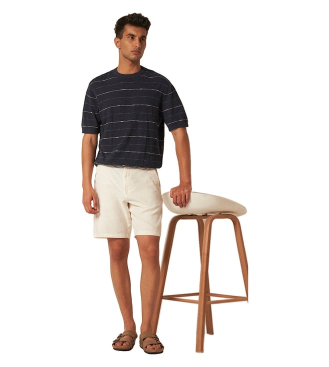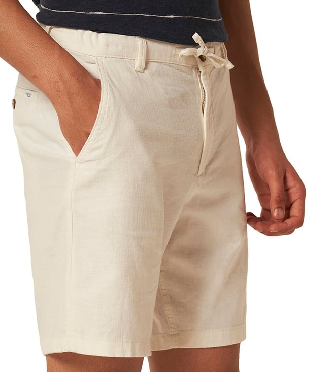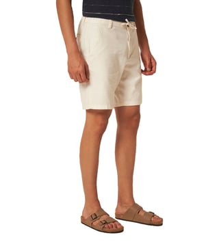 Elevate your summer wardrobe with these contemporary shorts, designed for effortless style and comfort. Featuring a mid-rise waist with a zip fly fastening, they offer a refined fit, while the cotton woven lining ensures a soft feel. A drawstring at the waist adds a touch of versatility, making them a perfect blend of sophistication and ease. The main material in this product contains a minimum of 50% organic cotton. Organic cotton is grown without the use of harmful chemicals. Organic cotton farming protects natural resources and biodiversity.