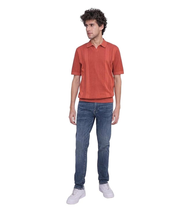 Etruscan Red StructuEtruscan Red Knit Organic Cotton Polo T-Shirt
