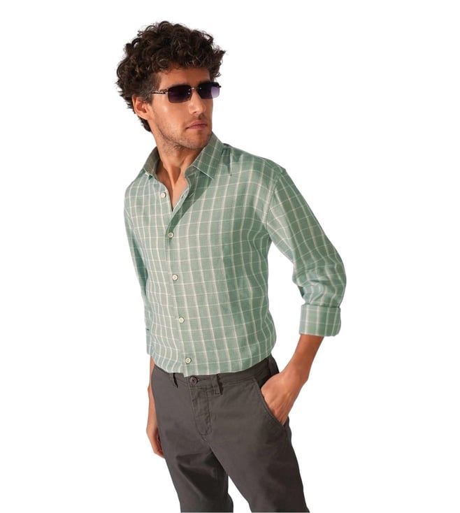 SELECTED HOMME Iceberg Green Check Print Full Sleeves Shirt