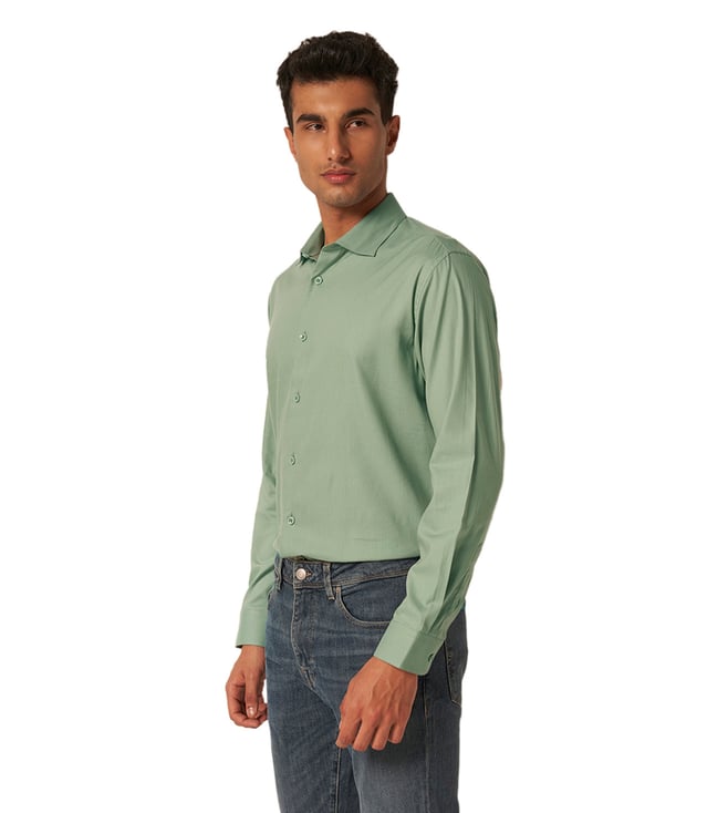 A blend of classic style and modern comfort, the Genoa LS Tence Solid Regular Fit Shirt in Iceberg Green is a wardrobe essential for effortless sophistication. Crafted from premium cotton, this long-sleeved shirt ensures breathability and all-day comfort while offering a refined, polished look. Featuring a regular fit, button fastening, and a classic collar, this shirt transitions seamlessly from work to weekend wear. Its versatile design makes it easy to pair with tailored trousers for a sharp ensemble or dress down with jeans for a relaxed yet stylish outfit.