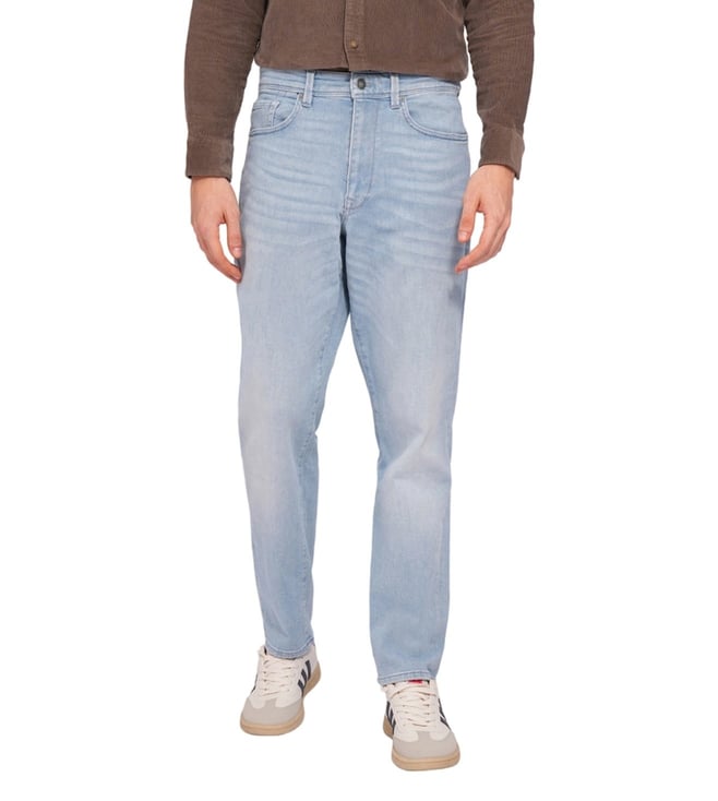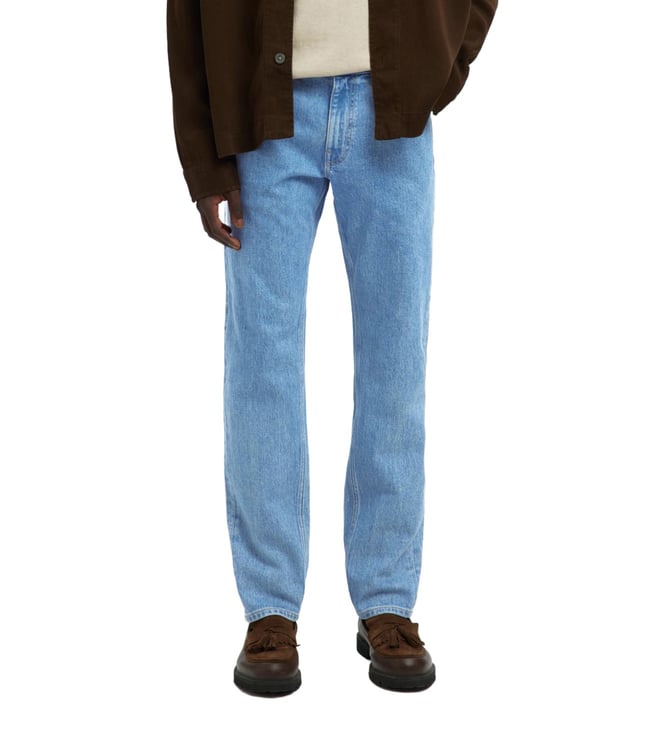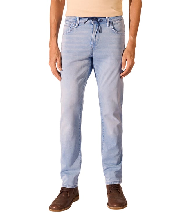 Light Blue Lightly Washed Mid Rise Straight Fit Jeans