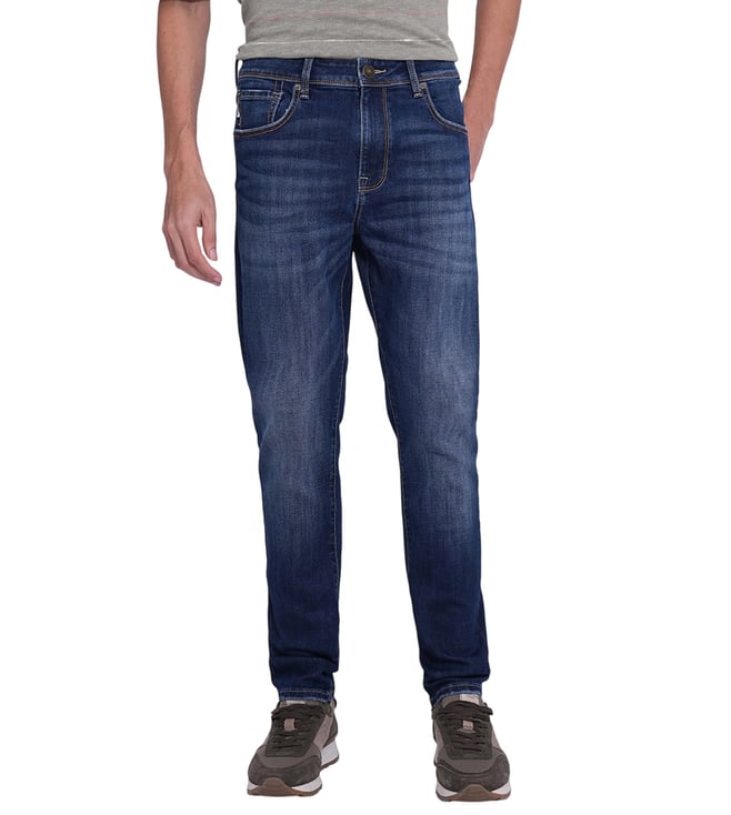 Dark Blue Mid Rise Leon Slim Fit Jeans