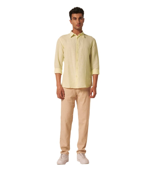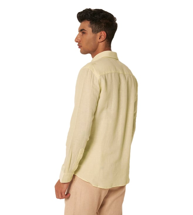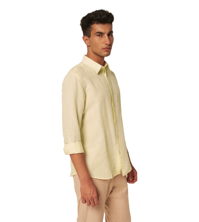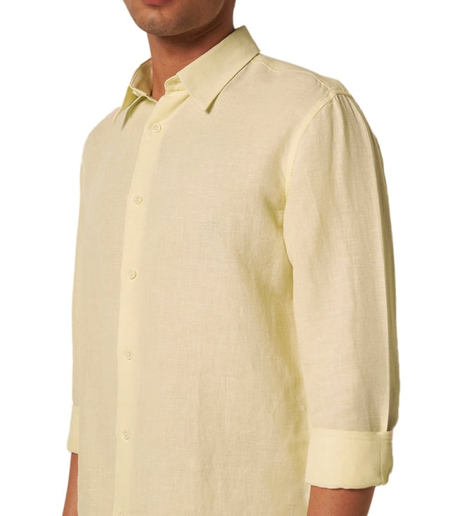 Brighten up your wardrobe with the John Solid Regular Fit Shirt in Mellow Yellow, a timeless piece that blends style and comfort effortlessly. Crafted from breathable linen, this long-sleeved shirt ensures a light, airy feel, making it ideal for both warm and transitional weather. Designed with a classic spread collar and button fastening, it exudes refined sophistication, while the regular fit provides a relaxed yet structured silhouette. Whether paired with tailored trousers for a polished look or worn casually with jeans, this shirt is a versatile essential for any occasion.