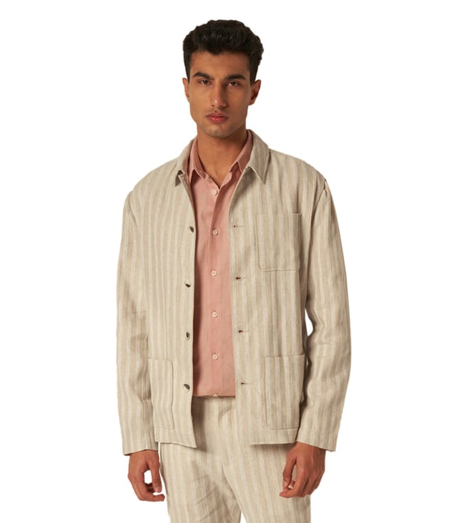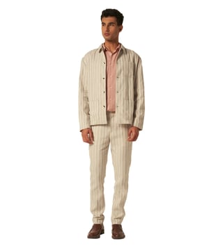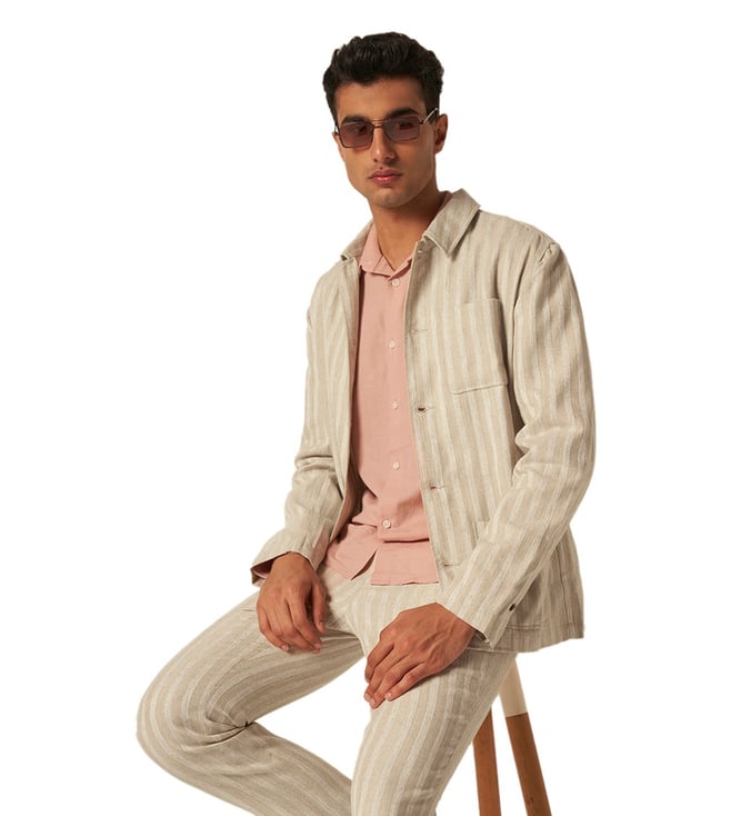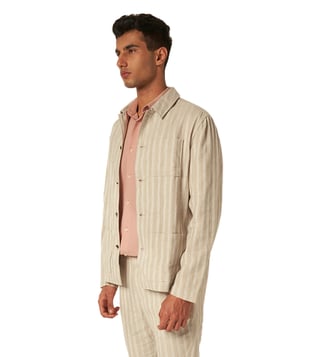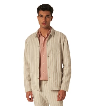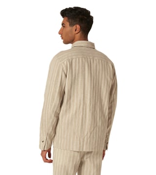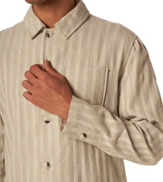 A refined layering essential, the LS Stripe Regular Fit Shirt in Oatmeal blends timeless style with everyday comfort. Crafted from breathable cotton, this beige striped overshirt is lightweight yet durable, making it perfect for year-round wear. Designed with a classic spread collar, long sleeves, and a button-fastening front, this versatile piece offers effortless sophistication. The regular fit ensures a relaxed yet structured silhouette, making it easy to layer over a T-shirt or wear on its own for a polished look.