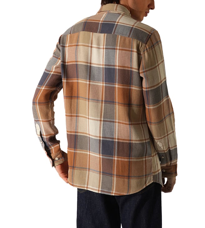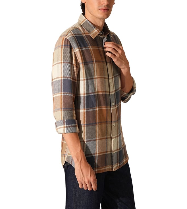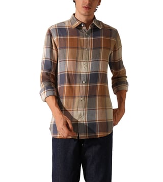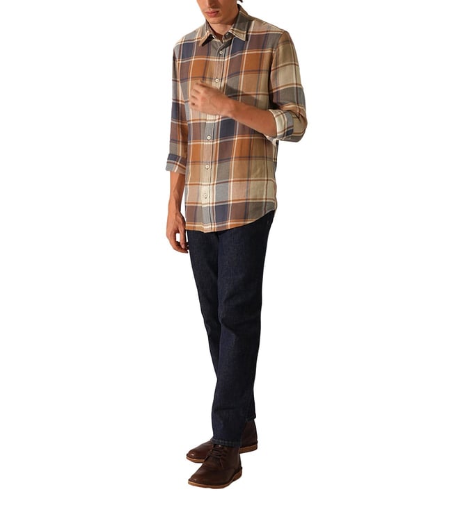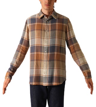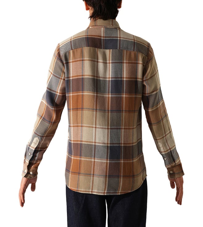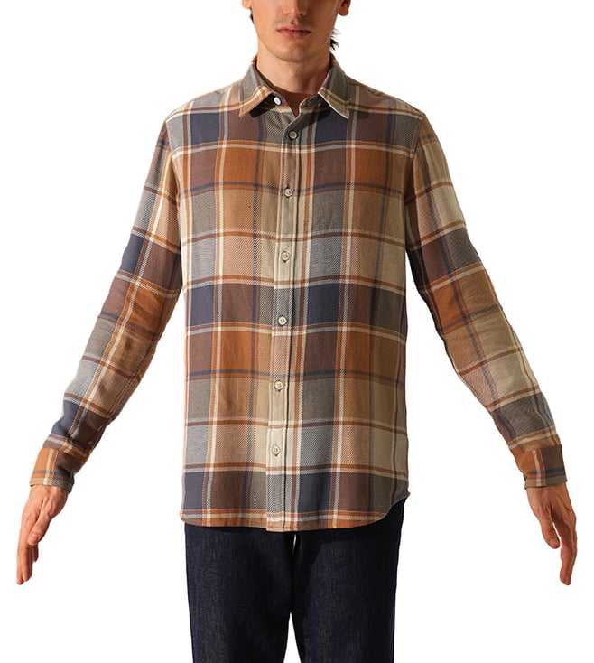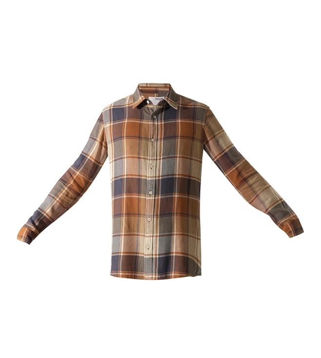 Orange Rust Checked Slim Fit Shirt