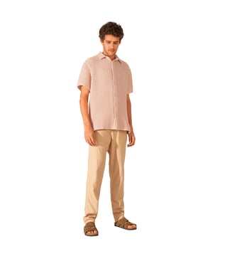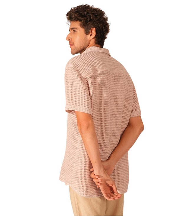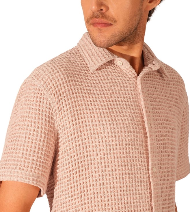 Embrace effortless style with this pink textured shirt, designed for the modern man. Crafted from premium cotton, it offers a breathable, comfortable fit, perfect for any occasion. The regular fit silhouette ensures a flattering look, while the short sleeves add a touch of casual elegance. Featuring a classic shirt collar and a sleek closure, this shirt seamlessly blends sophistication with everyday wearability. Its textured pattern adds depth and character, making it a standout piece in any wardrobe.