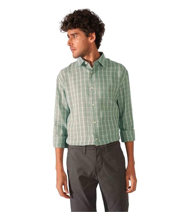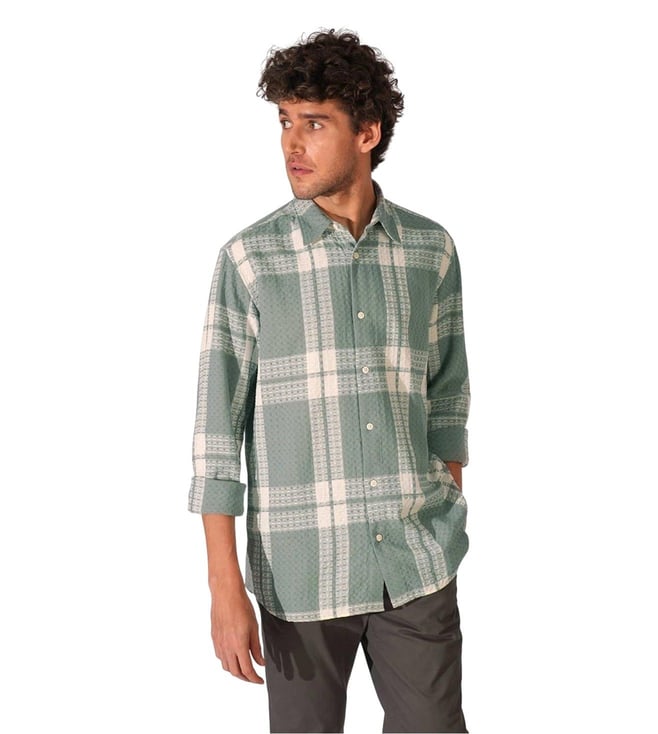 Iceberg Green Check Print Full Sleeves Shirt