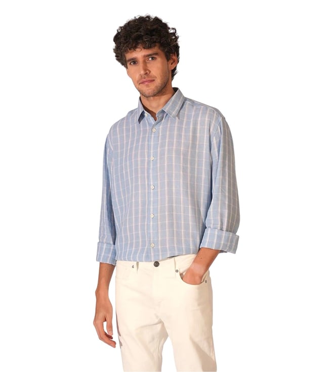 Cashmere Blue Check Print Full Sleeves Shirt