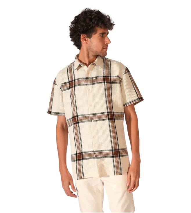 Oatmeal Checks Regular Fit Casual Shirt
