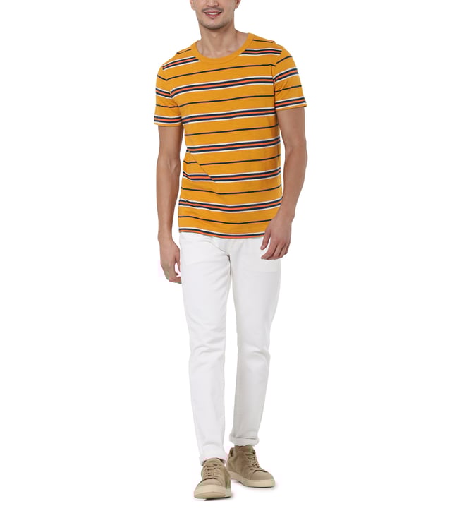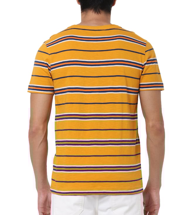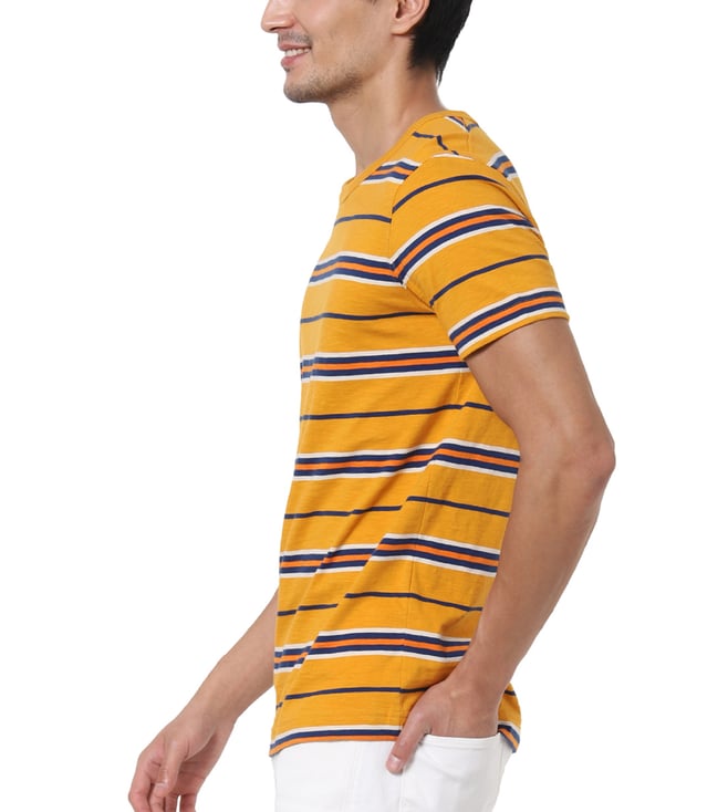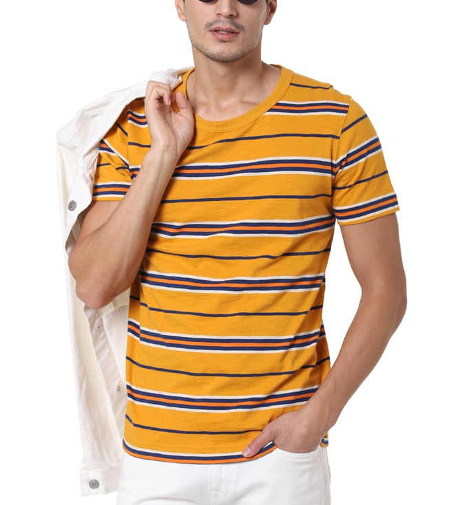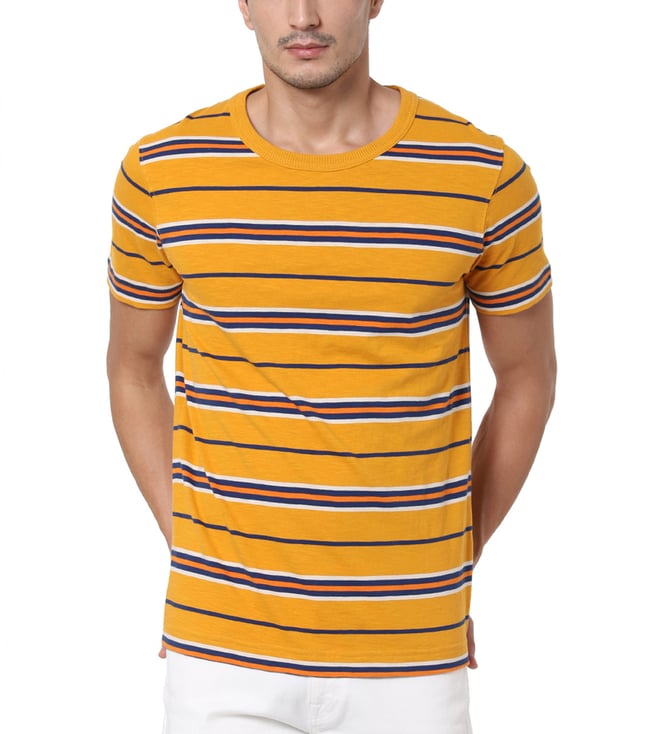 Embrace the perfect amalgamation of style and comfort by wearing this t-shirt, made with 100 percent organic cotton. This half-sleeved t-shirt is cut for a regular fit, finished with a crew neck and features the classic stripes throughout.
