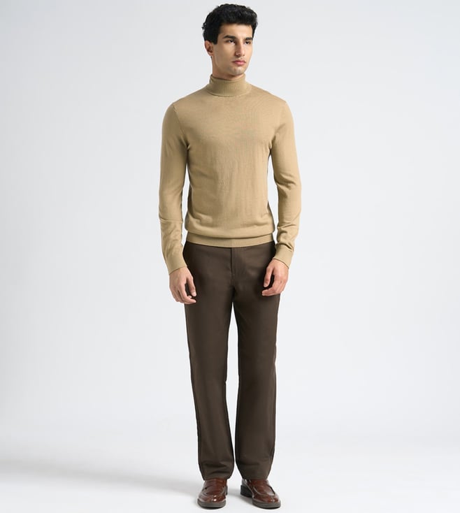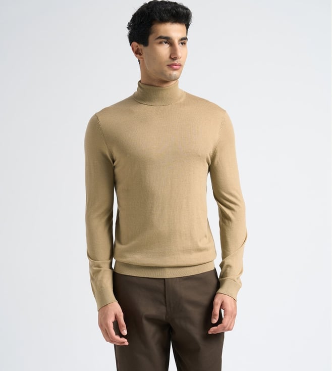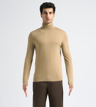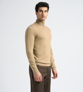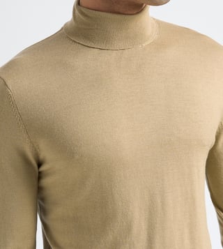 This soft knitted turtleneck is made from 100% Merino wool, making it exceptionally breathable and lightweight. Wear it with slim-fit chinos and Chelsea boots.
