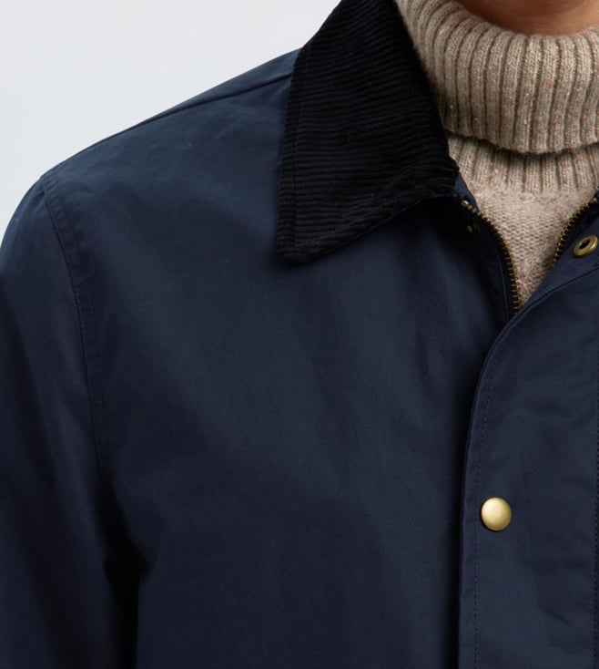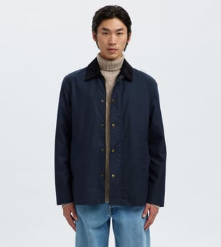 Introducing the newest iteration in our exclusive capsule of waxed cotton jackets. Cut from premium fabric from world-renowned Scottish mill Halley Stevenssons, this jacket features a corduroy collar and signature water-repellent waxed finish. Complete with a secure zip-up front and press-stud placket, it's guaranteed to keep the wind out and keep the warmth in - perfect for the colder seasons. It's a piece of outerwear you can cherish for years to come, making it a stylish and durable investment. Wear it with dark-wash denim, wool knitwear, and leather boots.