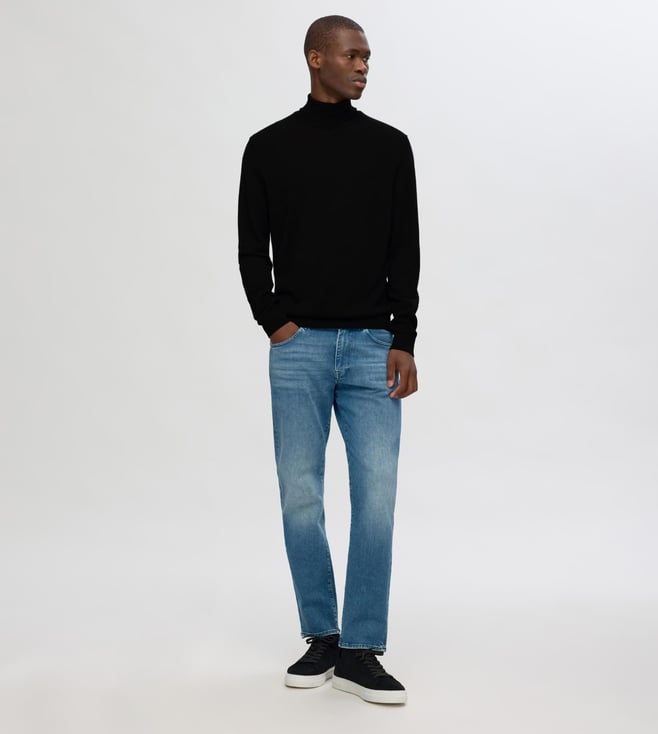 This soft knitted turtleneck is made from 100% Merino wool, making it exceptionally breathable and lightweight. Wear it with slim-fit chinos and Chelsea boots.