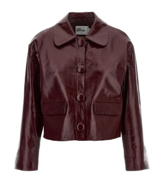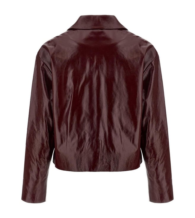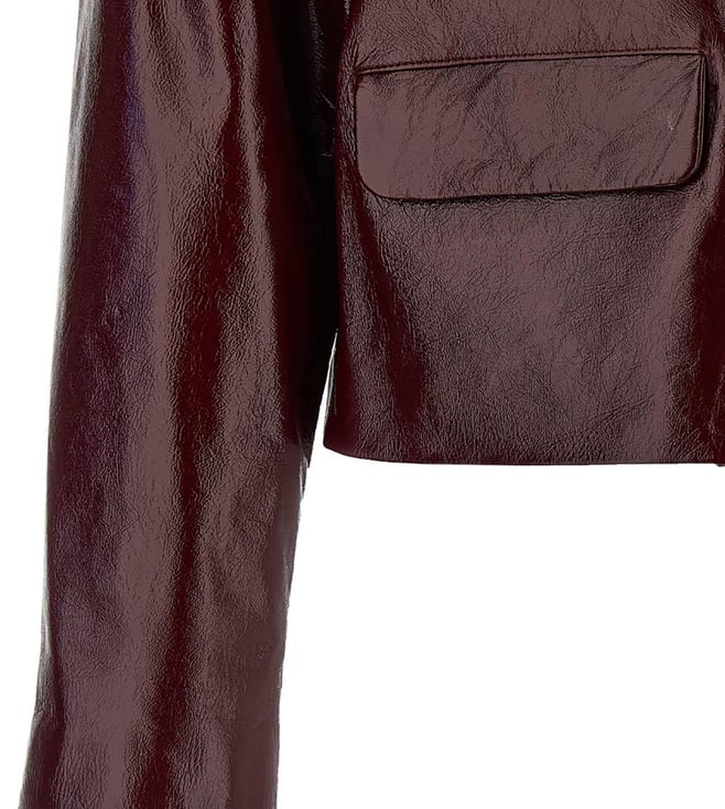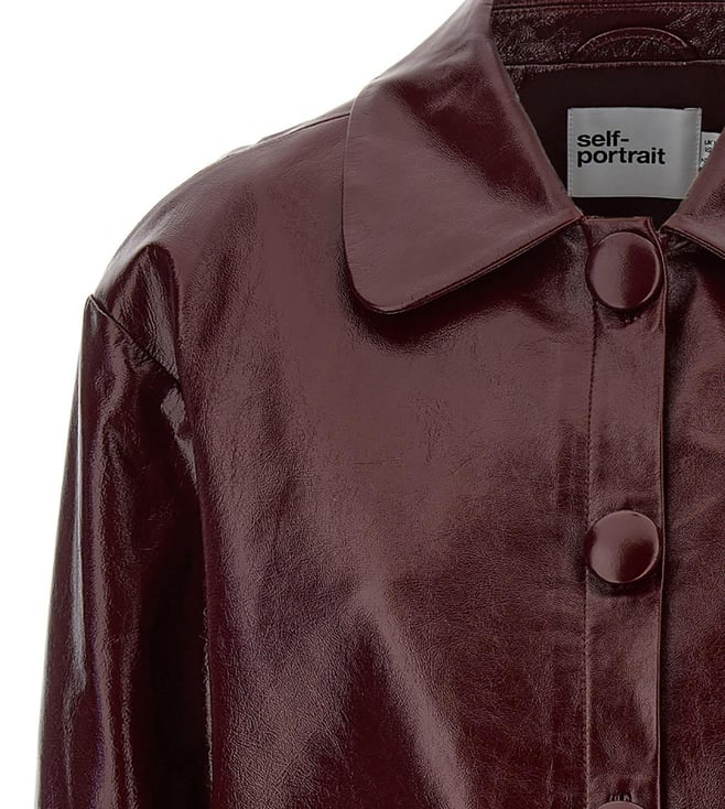 Self-Portrait Maroon Craque Leather Relaxed Fit Jacket