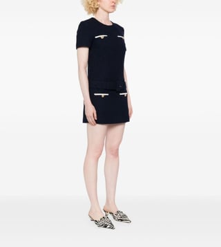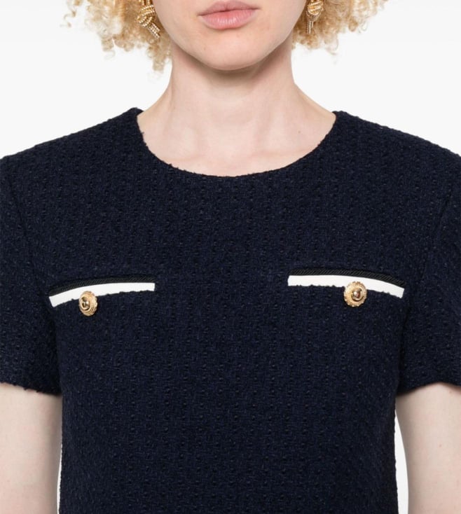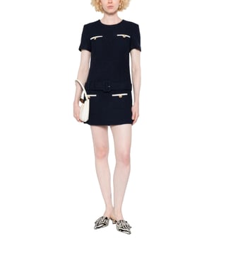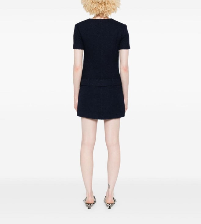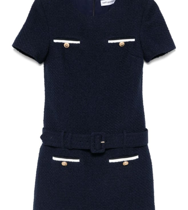 Self-Portrait Navy Blue Belted Tweed Mini Dress