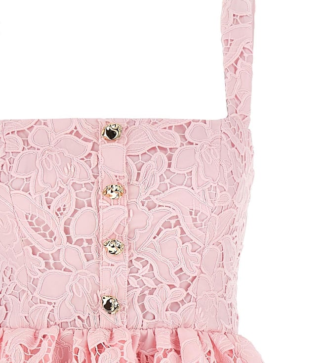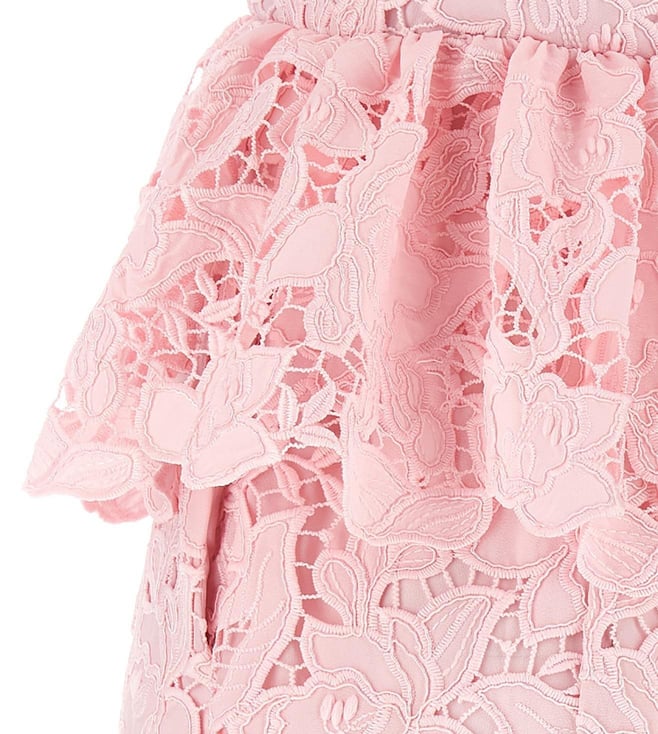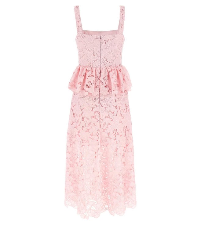 Self-Portrait Pink Lace Peplum Midi Floral Slim Fit Dress
