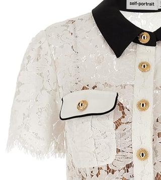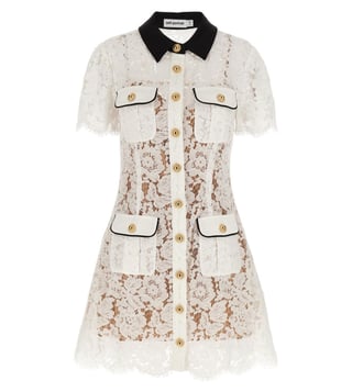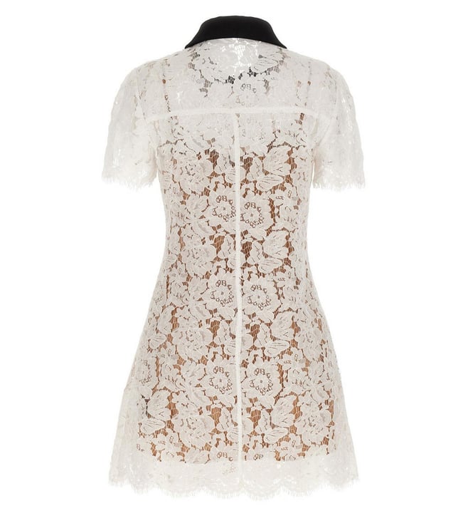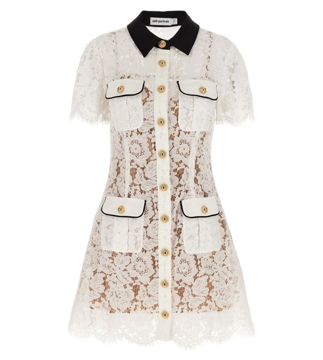 Self-Portrait White Lace Contrast Collar Mini Floral Slim Fit Dress