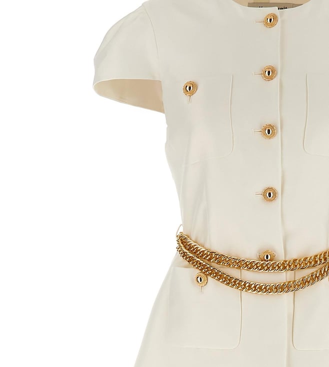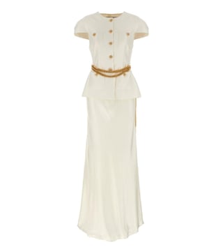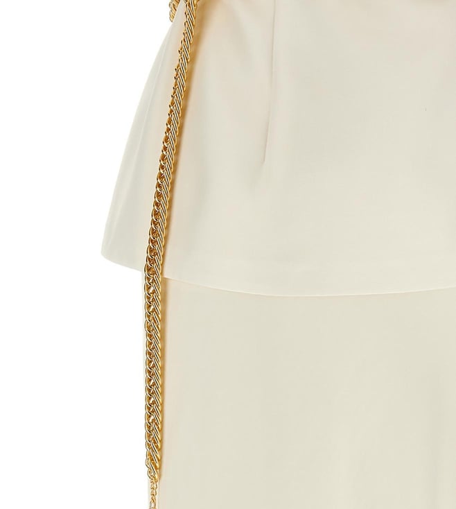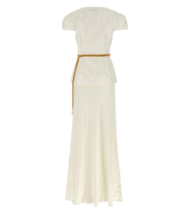 White Taffeta Chain Belt Maxi Embellished Slim Fit Dress