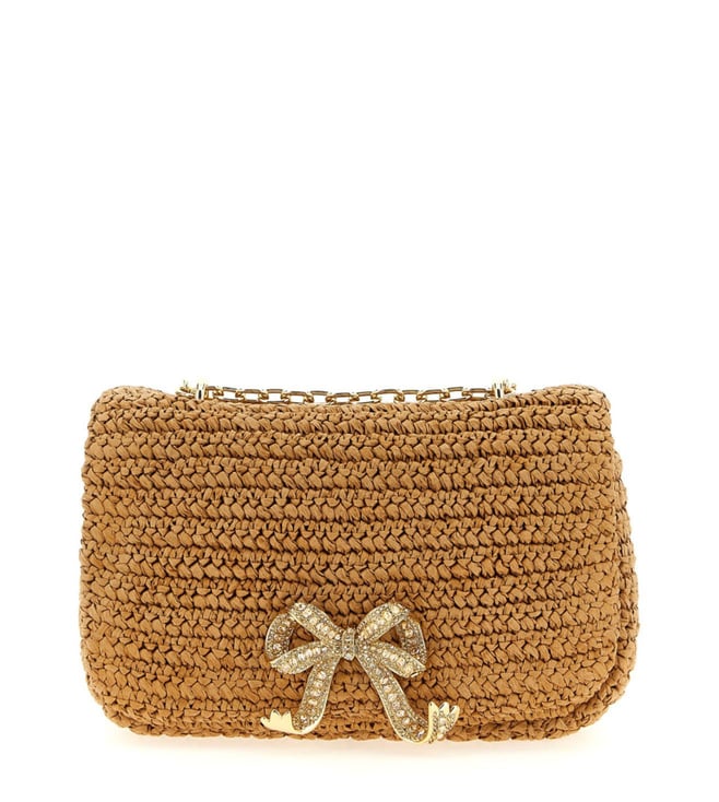 Self Portrait Natural Raffia Bow Charm Shoulder Bag