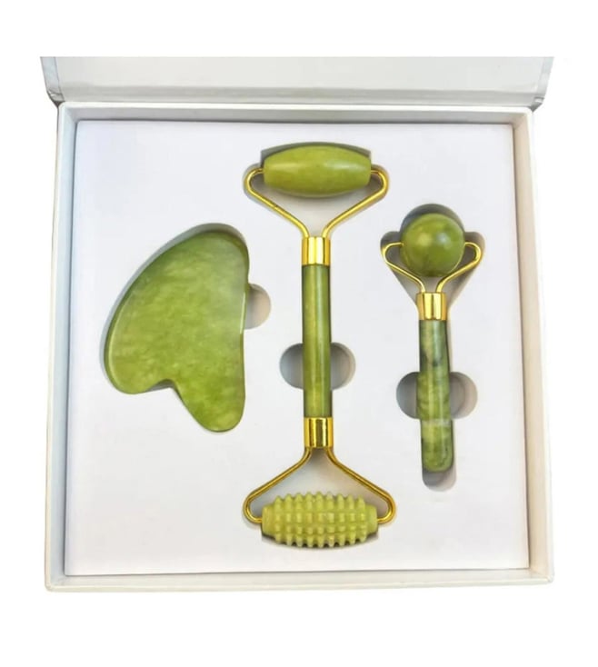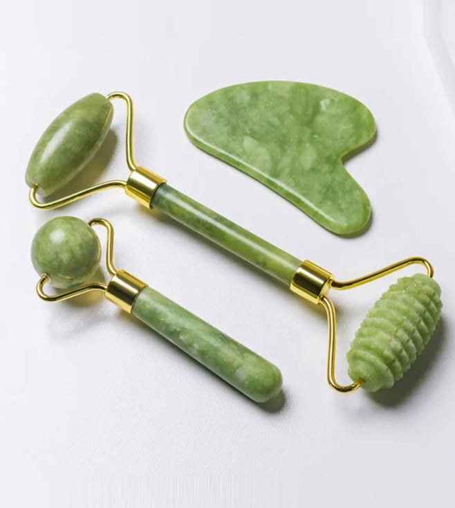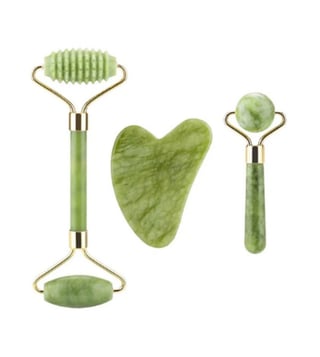 This combo will help you relax your face. This combo includes the large roller that can be used for the massage of the forehead, cheeks, chin and neck. The small roller is suitable for around the eyes and above the nose and gua sha facial massager tool. It involves scraping your skin with a massage tool to improve your circulation.