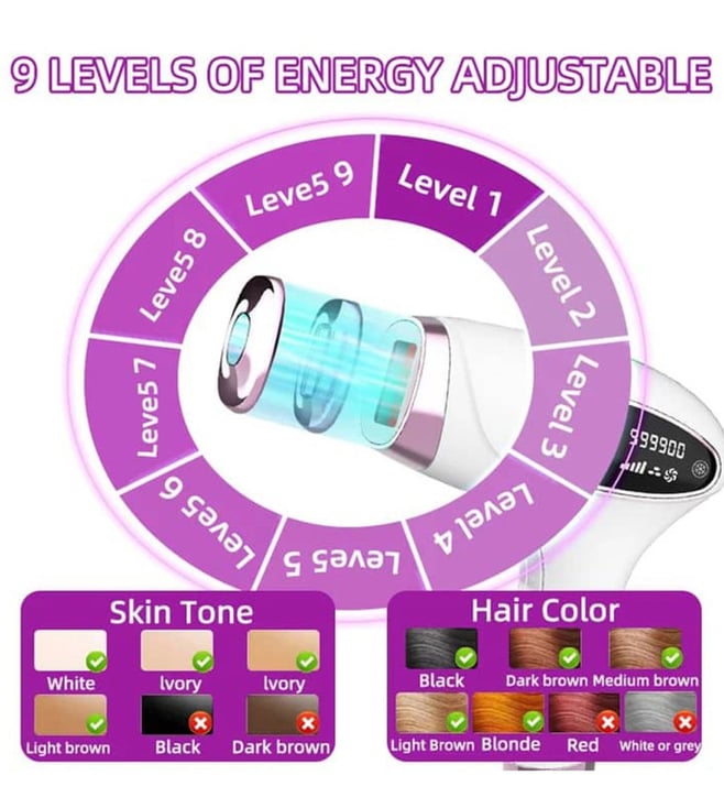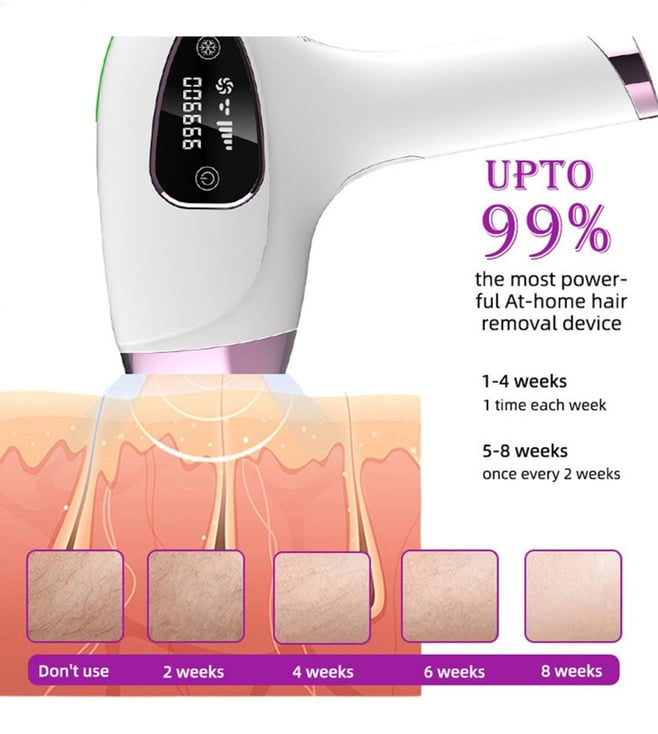 This laser hair removal with ice cooling technology offers painless permanent hair removal for reduction in hair growth on the body and face. It comes with automatic manual mode with 9 energy levels is an IPL specialist group with over a decade of experience in combining clinical hair removal innovation with advanced skin protection. Representing a long-lasting, effective hair removal solution, this device has become the go-to choice of millions of users around the globe.