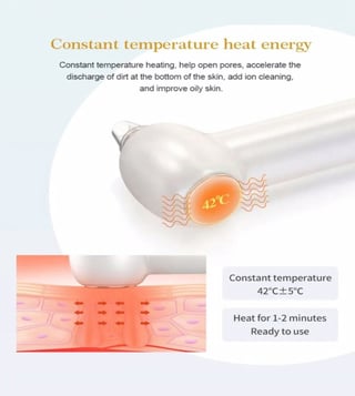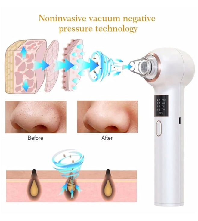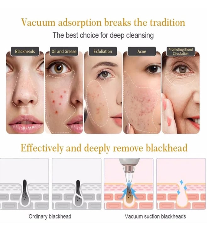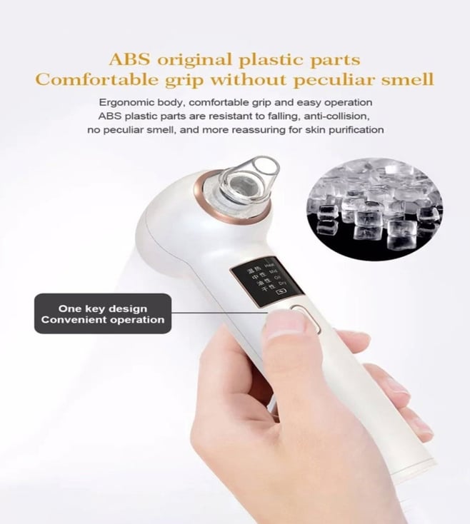 This blackhead remover comes with massage heads and suction modes. It is a multifunction beauty equipment that quickly opens pores and makes the essence better absorbed, so blackheads are sucked out. Intimate food-grade suction head touches every inch of skin. Ergonomically designed to be more skin-friendly and convenient to use, with five choices - a small round suction head, a cup suction head, a mid-circle suction head, an elliptical suction head and a big round suction head.