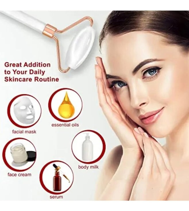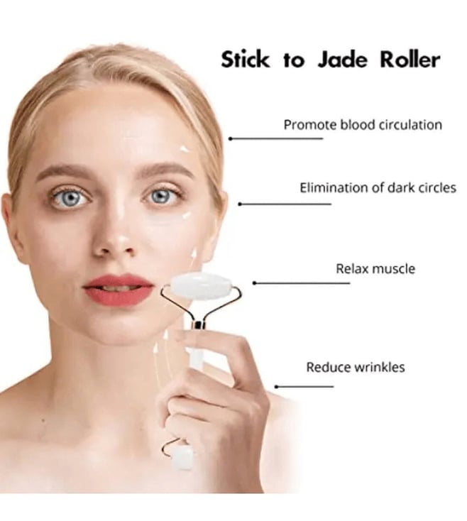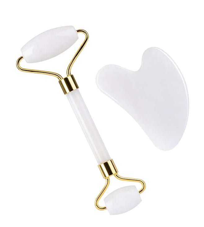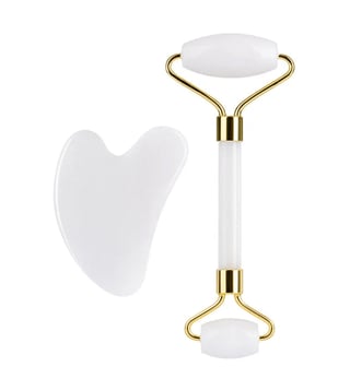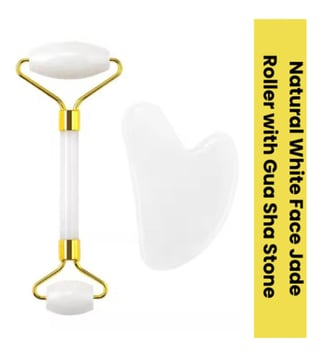This jade roller with gua sha stone set is a popular and luxurious skincare tool designed to enhance your beauty routine and promote overall skin health. This jade roller and a gua sha stone both are crafted from natural jade. White jade, also known as nephrite jade, is a beautiful, translucent white colour. It assists the body to heal itself is and especially helpful for fluid retention and ridding the skin of a puffy appearance.