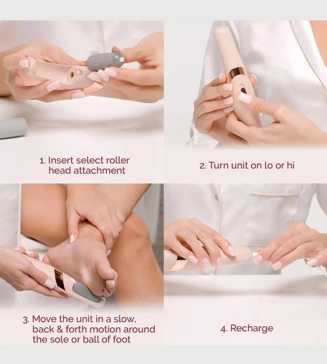 This electric callus remover and foot scrubber with 2 rollers removes and smooths unsightly calluses, cracked dry skin and rough areas instantly and painlessly. It removes and smooths unsightly calluses, cracked dry skin and rough areas instantly and painlessly. It features two interchangeable rollers for customized exfoliation. Achieve smooth, soft feet effortlessly and rejuvenate your feet with every use.