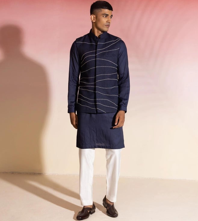 Navy Flow Kurta with Pyjama and Nehru Jacket