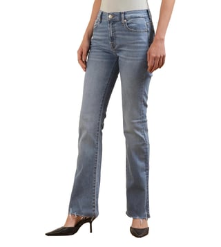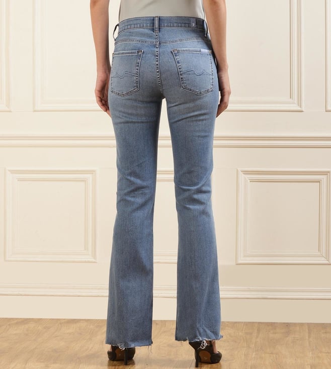 Seven For All mankind Women Mid Wash Bootcut Jeans With Raw Hem