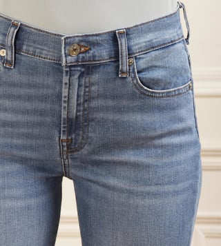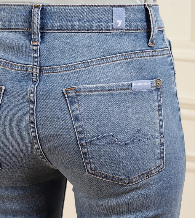 A must-addition to your capsule wardrobe, these mid-wash bootcut jeans from 7 For All Mankind guarantee a foolproof choice for an effortlessly cool everyday style. Featuring whiskers on the thighs and raw hems, these ultra-chic jeans are expertly crafted from a blend of cotton and elastane, ensuring optimal comfort and easy movement. Pair them with any separates for a versatile look.